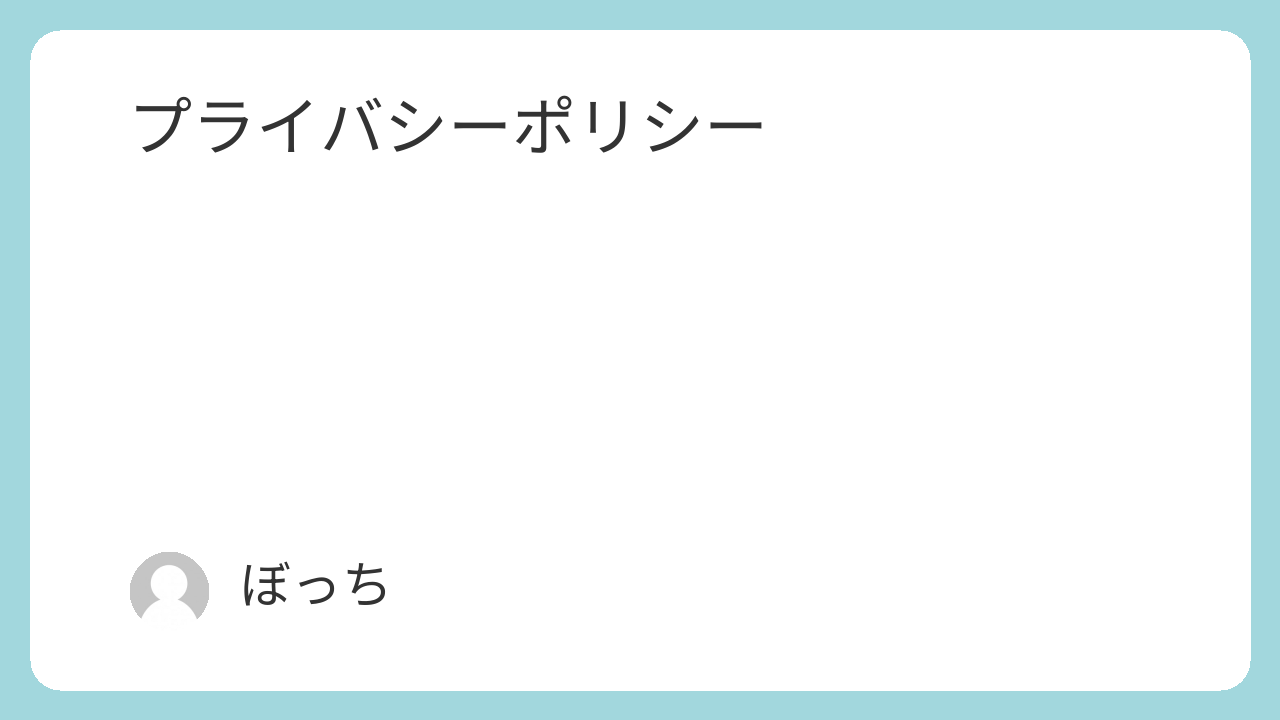 運営者:ぼっち 策定日:2026年3月1日